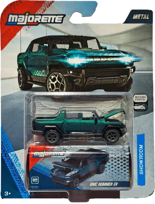 Description Scale: 1:64 Make/Model: GMC Hummer EV Colour: Green Series: Showroom Deluxe Manufacturer: Majorette